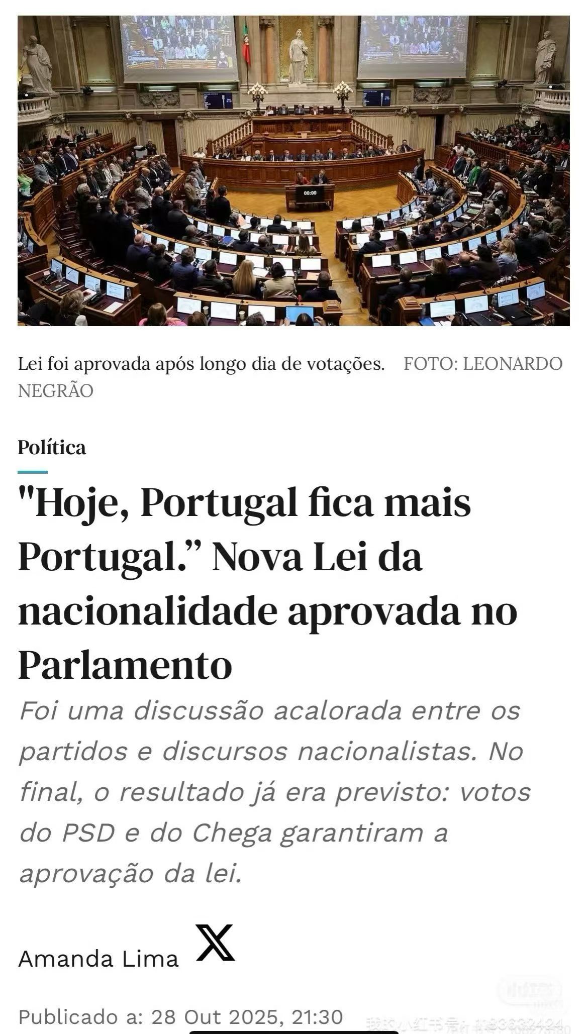 On October 28 (local time), Portugal’s long-awaited amendment to the Nationality Law—closely watched by immigration applicants worldwide—was finally put to a crucial parliamentary vote. The proposal passed successfully with the support of around 70% of attending members of parliament.