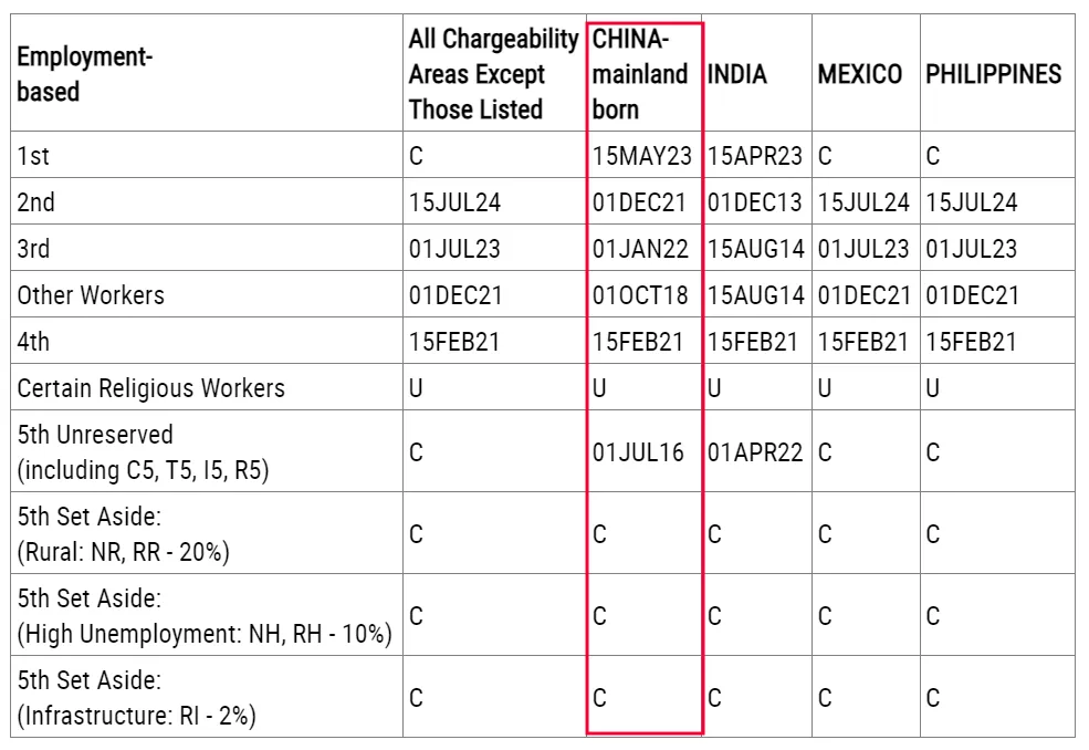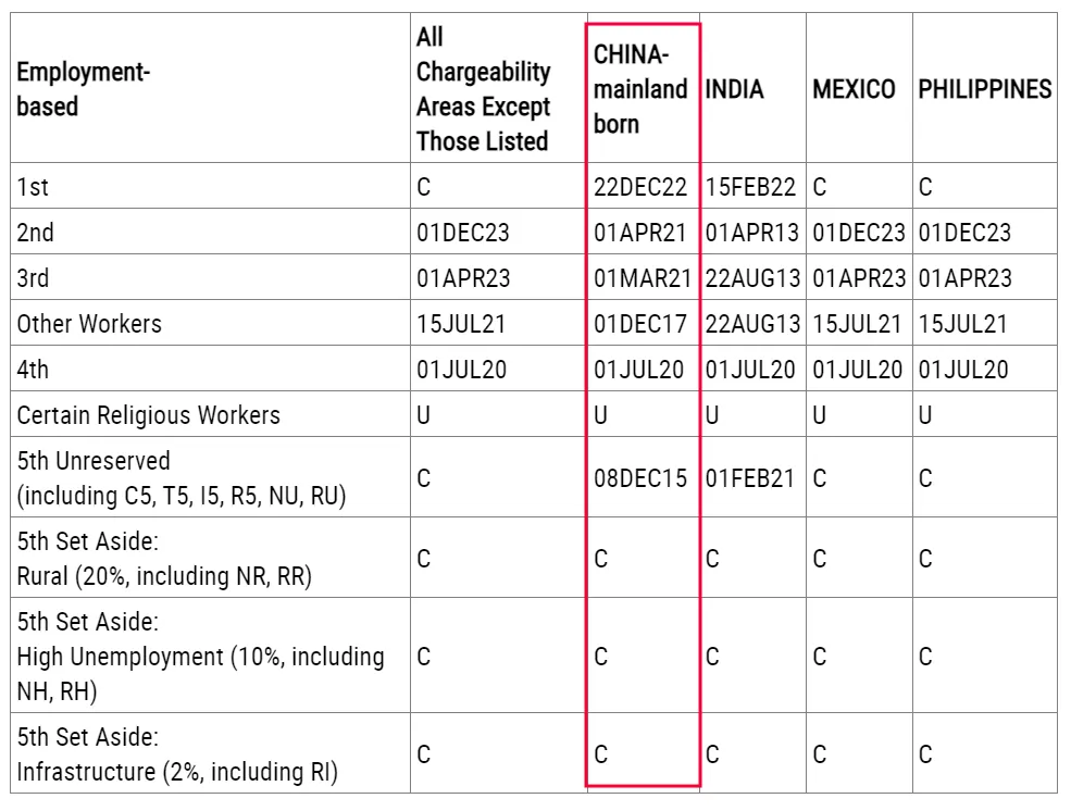 In terms of employment-based immigration, the U.S. EB-1A visa bulletin shows encouraging progress: